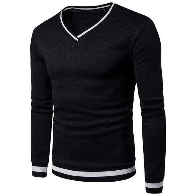 Cysincos Men Sweater 2019 Autumn Winter Casual V-neck Solid Thin Loose Sweater Male Long Sleeve Tracksuit  Knitted Top Plus Size