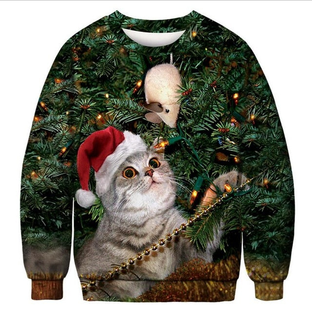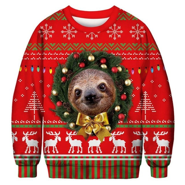 Unisex Men's Women's 2019 Ugly Christmas Sweater Vacation Santa Elf Funny Christmas Fake Hair Jumper Autumn Winter Tops Clothing