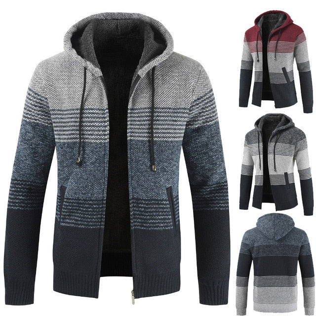 WENYUJH Fashion Sweater Coat Men Thick Warm Hooded Cardigan Men Striped Long Sleeved Zipper Fleece Coats Men 2019 New Winter